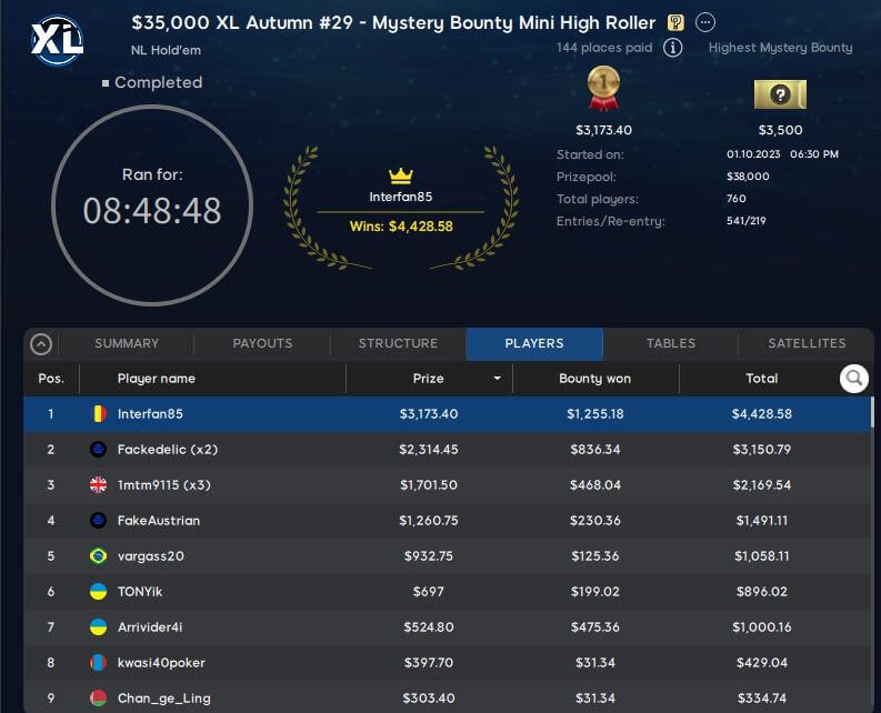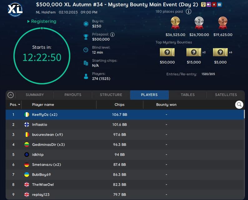 Die XL Autumn Series auf 888poker ging am vergangenen Wochenende in die Endphase und das bedeutet auch, dass die Entscheidung beim $250 Mystery Bounty Main Event naht.