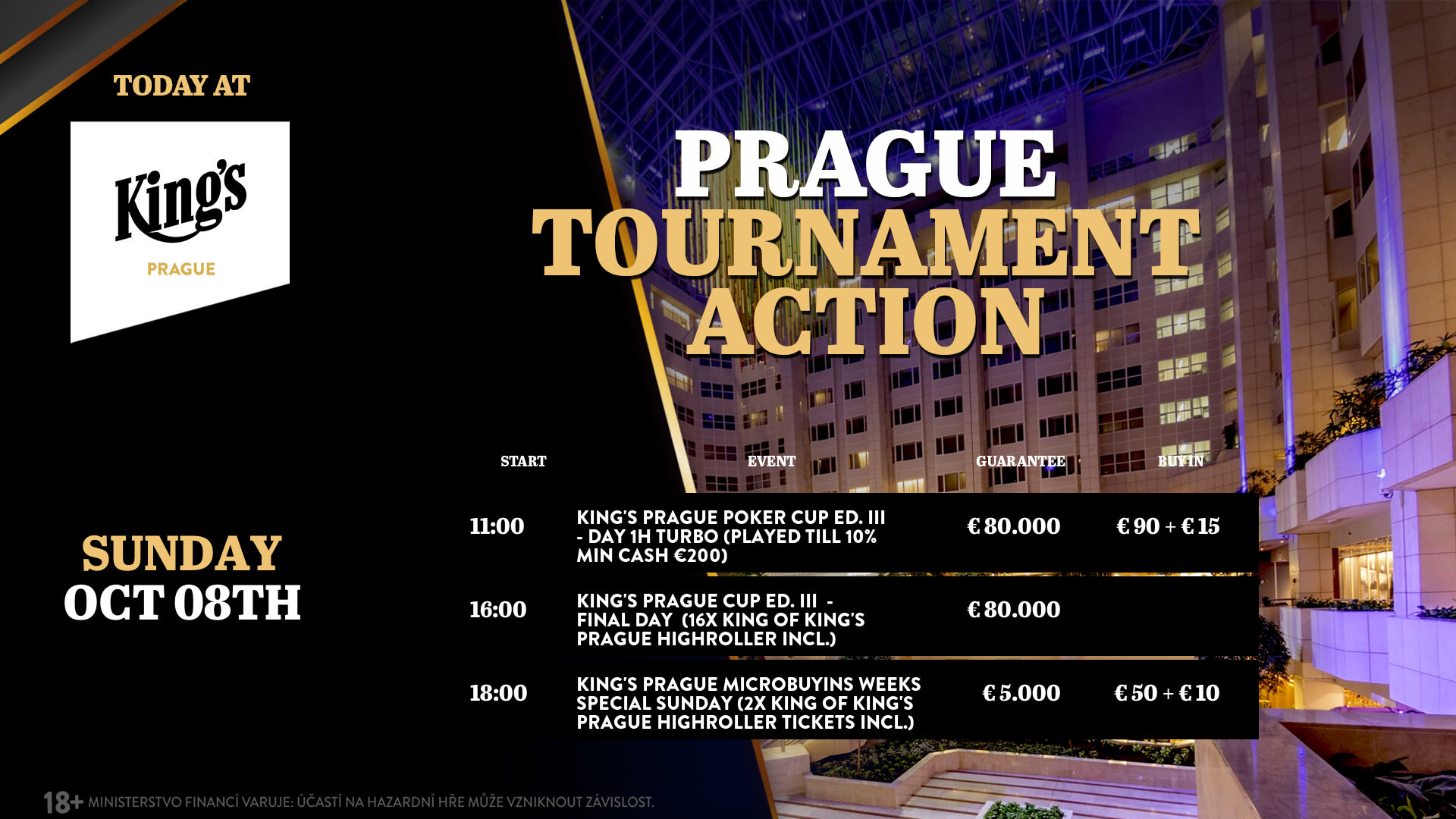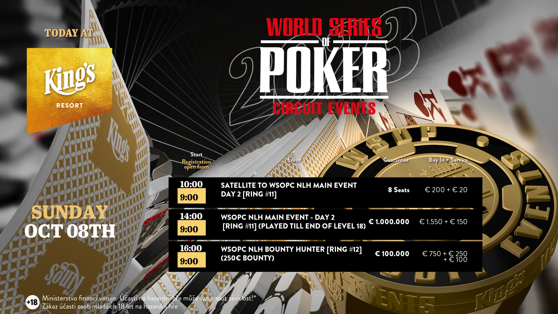 Neben dem Main Event des World Series of Poker Circuit im King’s Resort gab es noch zwei Tagesturniere: Das King’s PLO 500 und das Saturday Turbo – im King’s Prag wurde ein Flight des hauseigene Poker Cup gespielt.