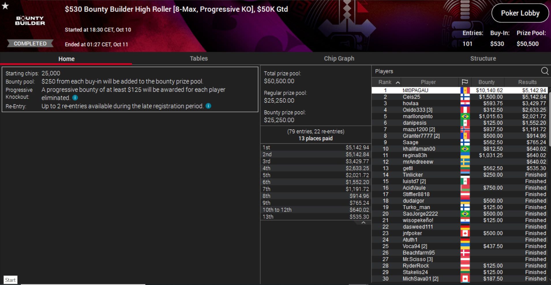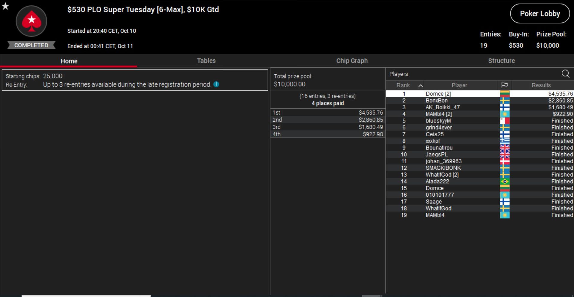 Auch am Dienstag durften die Highroller bei PokerStars ran und konnten insgesamt sechs Turniere austragen.