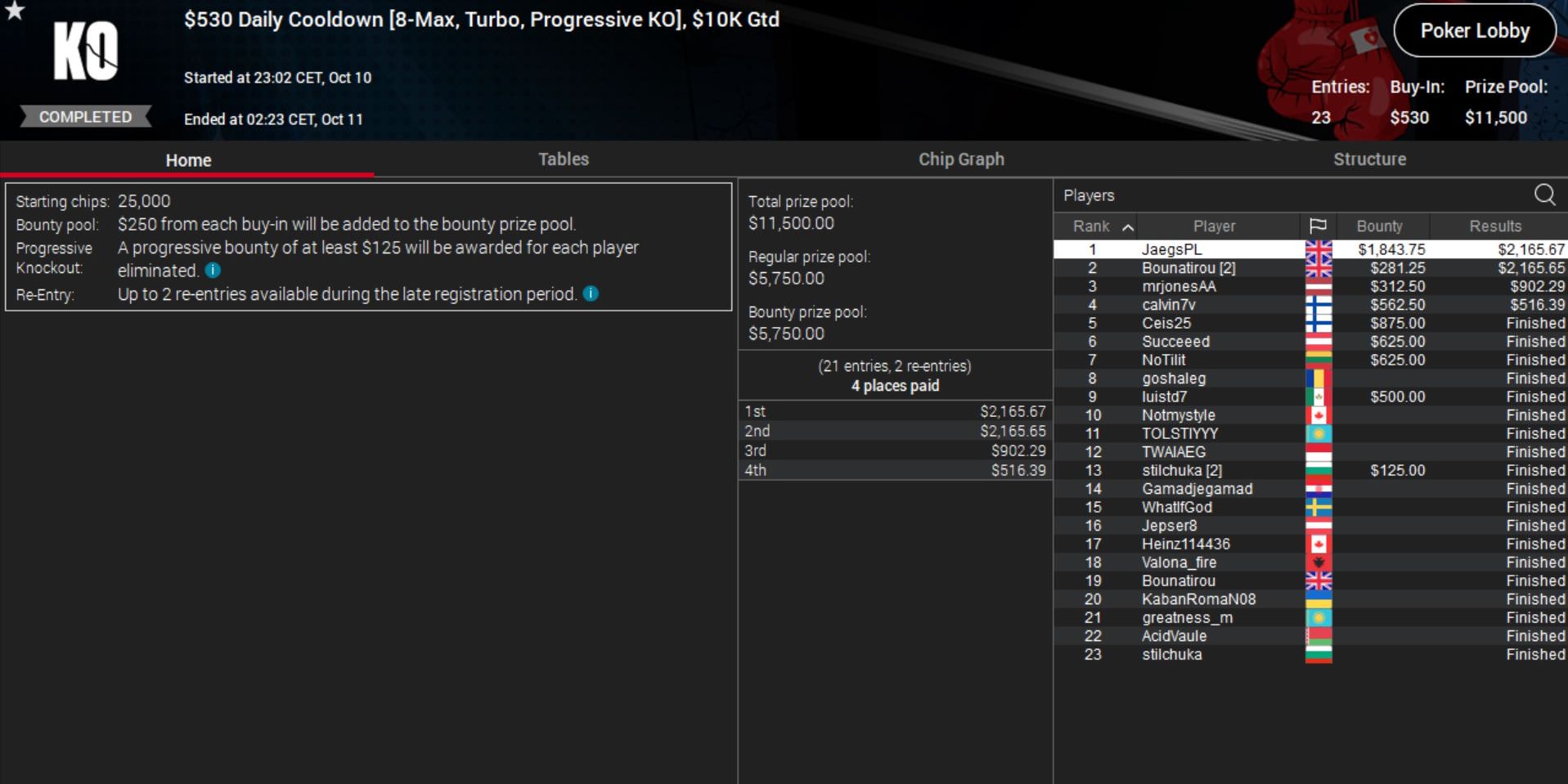 Der Brite konnte sich schließlich durchsetzen und kassierte rund $4.000, während Nitsche für Platz 2 rund $2.500 erhielt.