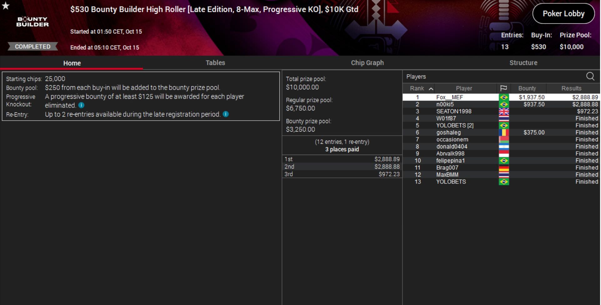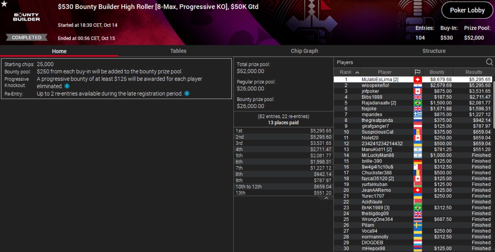 Mann des Tages war der formstarke Schweizer „MiJatoEsLima“, der sich den $530 Bounty Builder unter den Nagel riss.