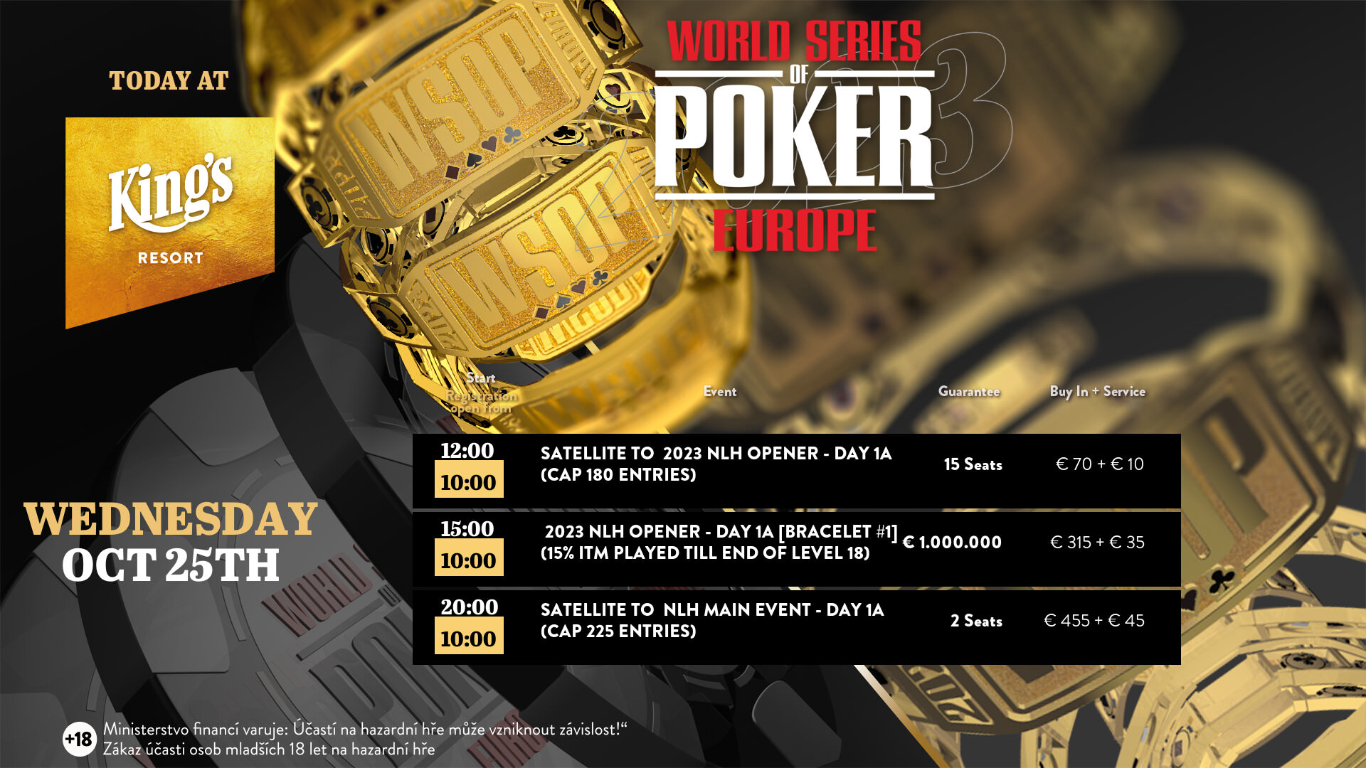 Um 20 Uhr findet zudem ein €445+45 Satellite für Tag 1A des WSOPE Main Events statt.