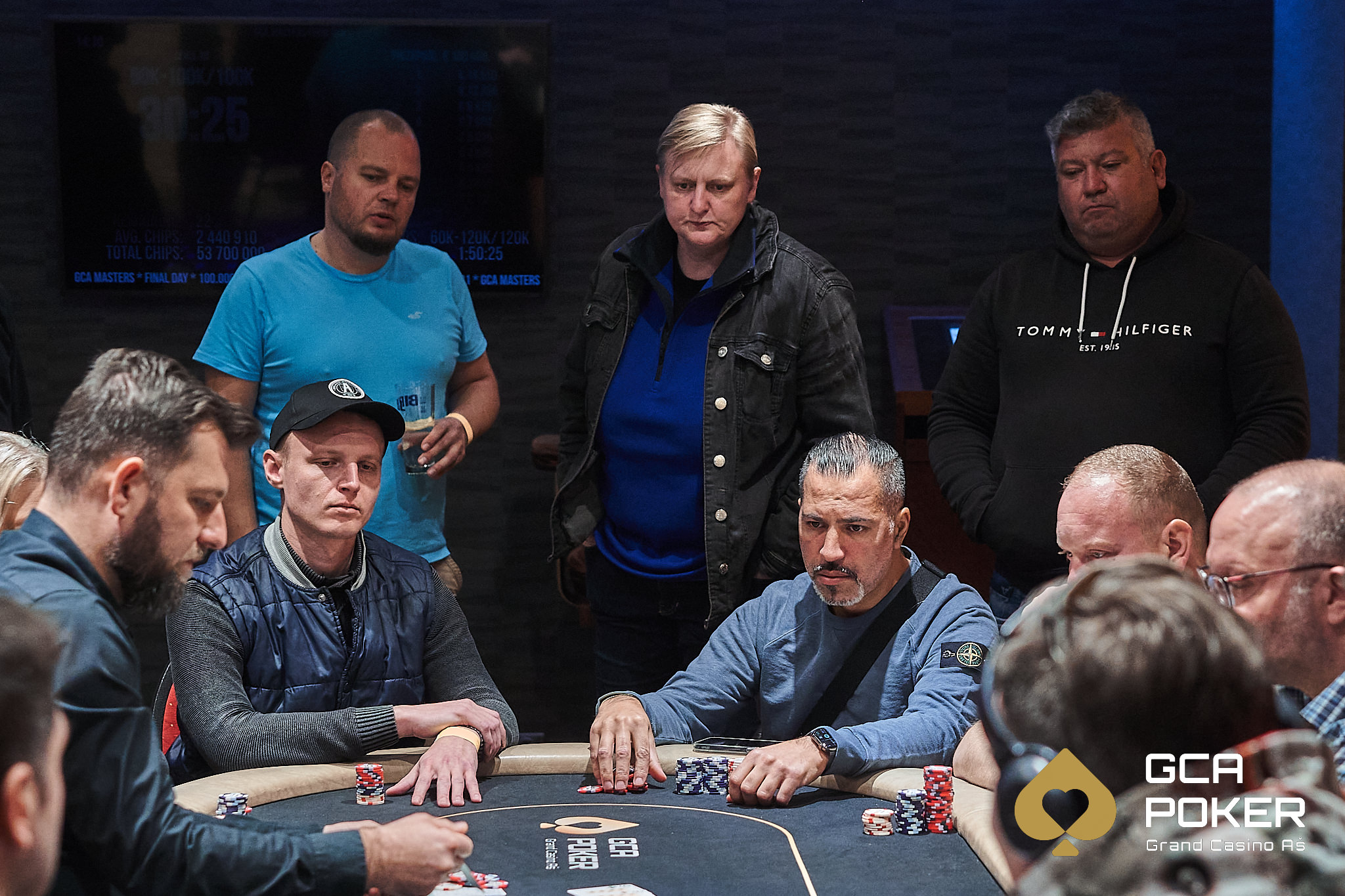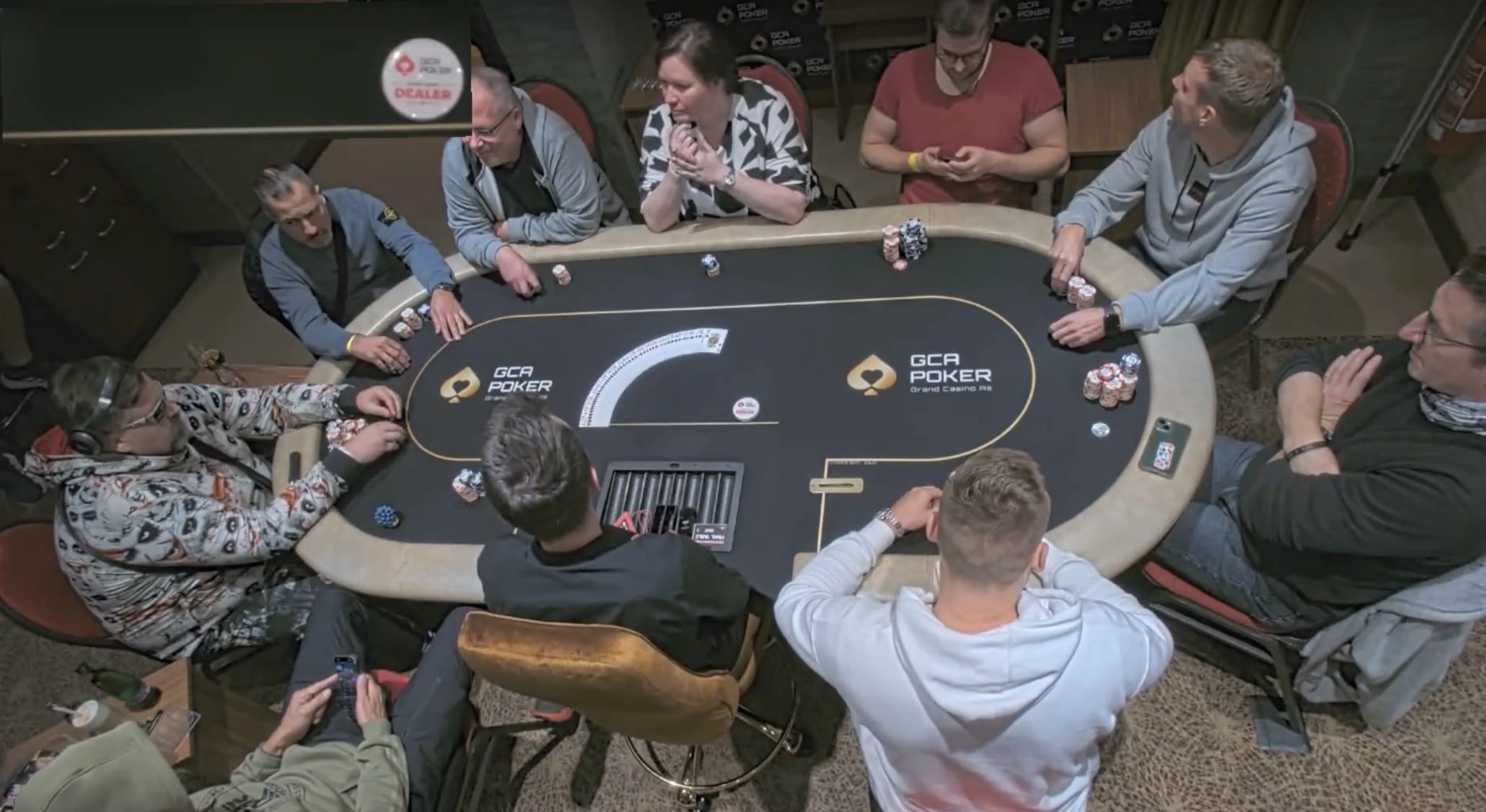 Bei Blinds von 50.000/100.000-100.000, Stacks zwischen 5 und 54 BBs und einem Average von 23 BBs, gab es einige Mal das ikonische „Seat Open“ zu hören. Von den 16 deutschen Spieler*innen schafften es 7 an den Final Table, wo jede*r bereits €2.100 Payout sicher hatte.