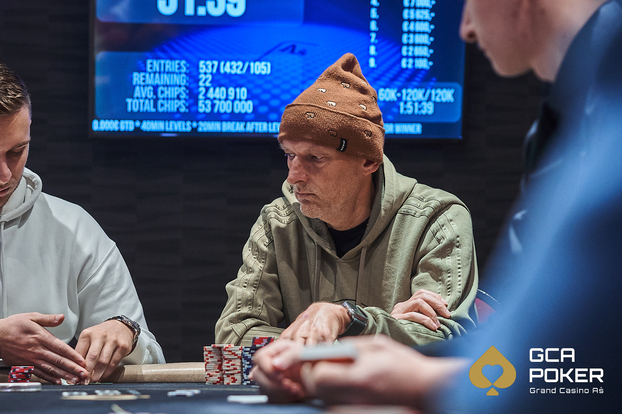 Als Chipleader startete „Joker_CZ“ in den Finaltag vor „Taubex“ und „Dieggo“. Drittkürzester Stack mit nicht einmal 10 Big Blinds war „Wotal“ – aber das sollte sich im Laufe des Sonntags ändern.