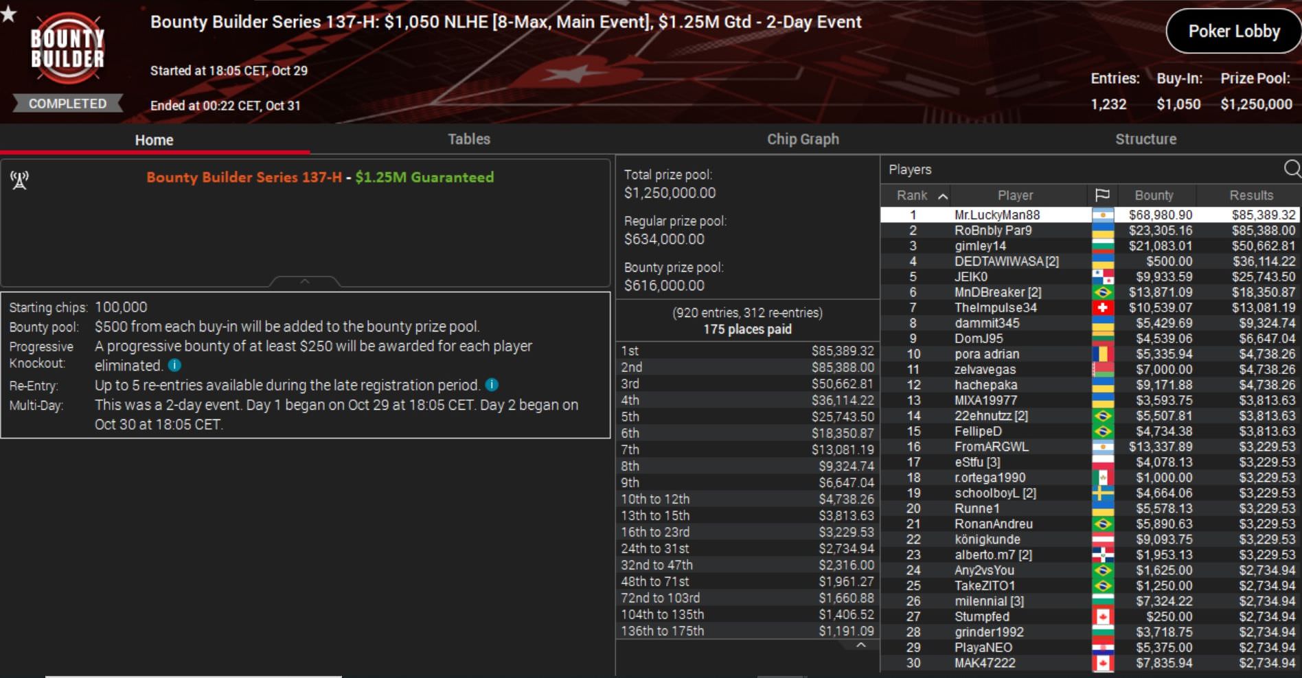 Großer Sieger des Schlusstags war der Argentinier „Mr.LuckyMan88“, der sich das BBS Main Event unter den Nagel riss und $154.000 abräumte.