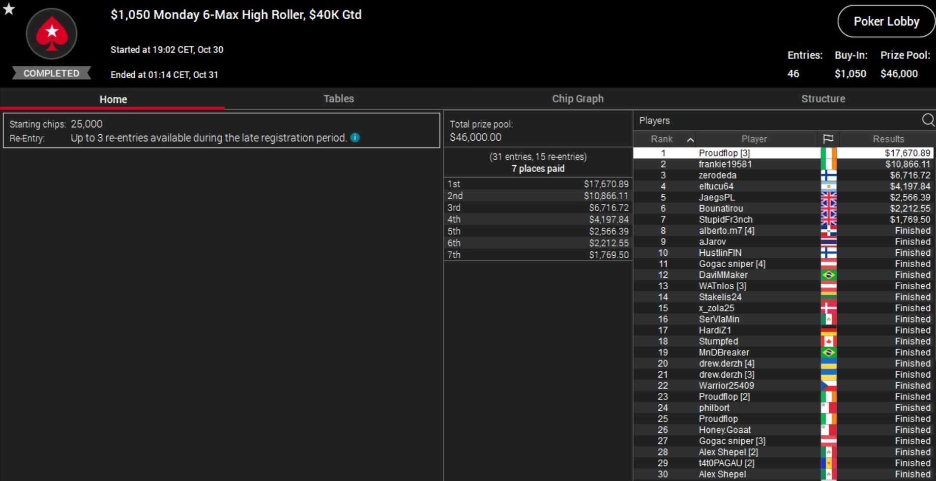 Auch Patrick „JaegsPL“ Lauber (Platz 3 beim Supersonic und Platz 5 beim $1.050 Monday 6-Max) und Jakob „Succeeed“ Miegel (Platz 3 beim Cooldown) landeten auf dem Treppchen.