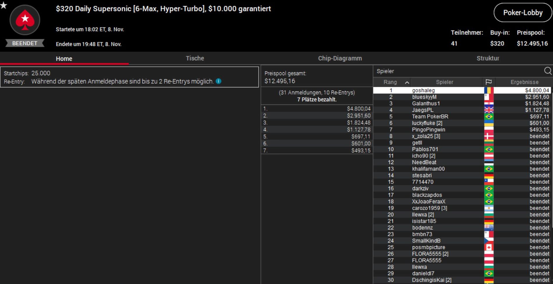 Die deutschsprachigen Spieler halten sich aktuell, auch wegen der WSOPE, ein wenig zurück, doch einer casht (fast) immer.