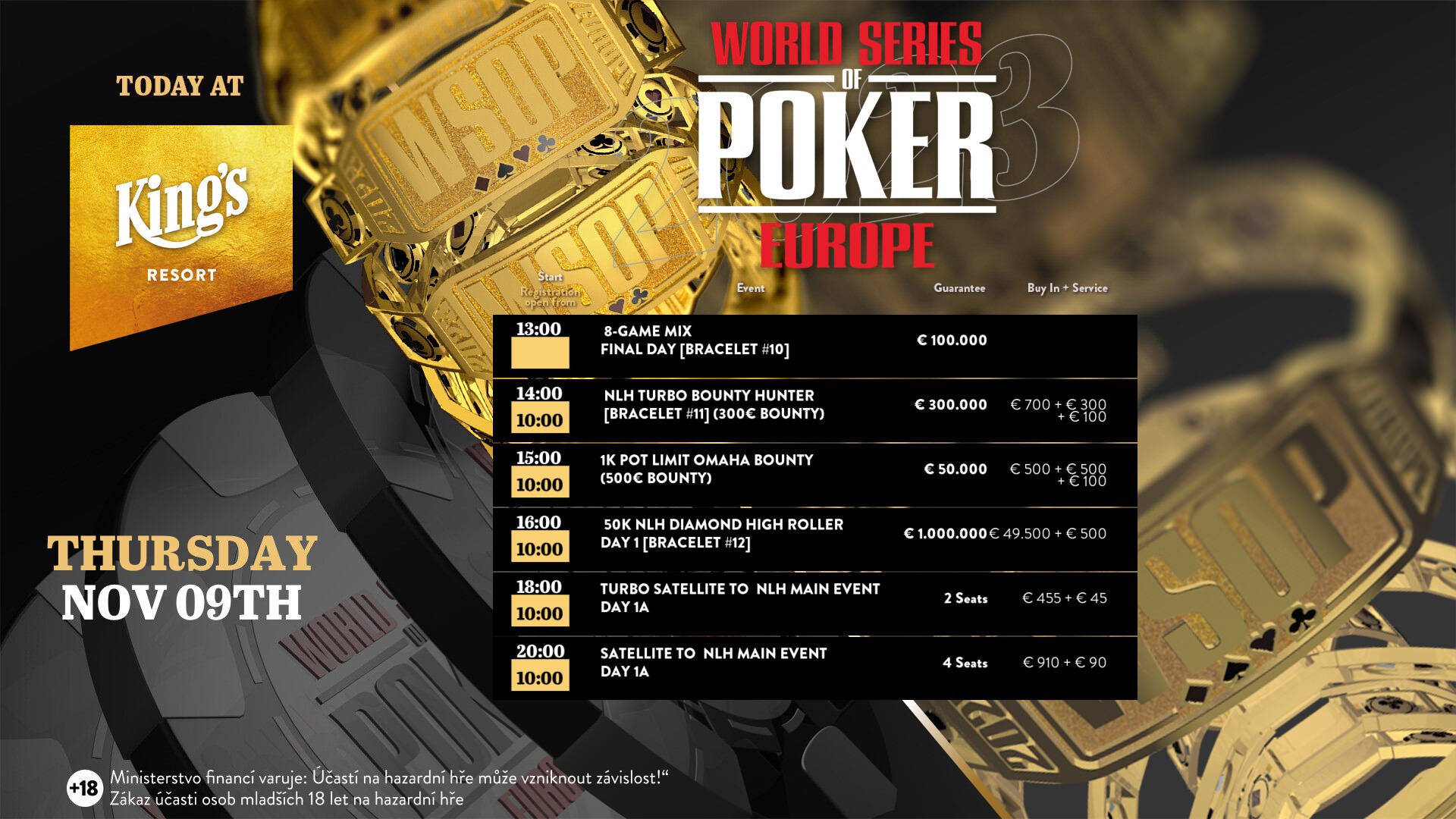 Parallel zu den Bracelet-Turnieren der WSOP Europe finden im King’s Resort Rozvadov auch noch diverse Side Events statt.