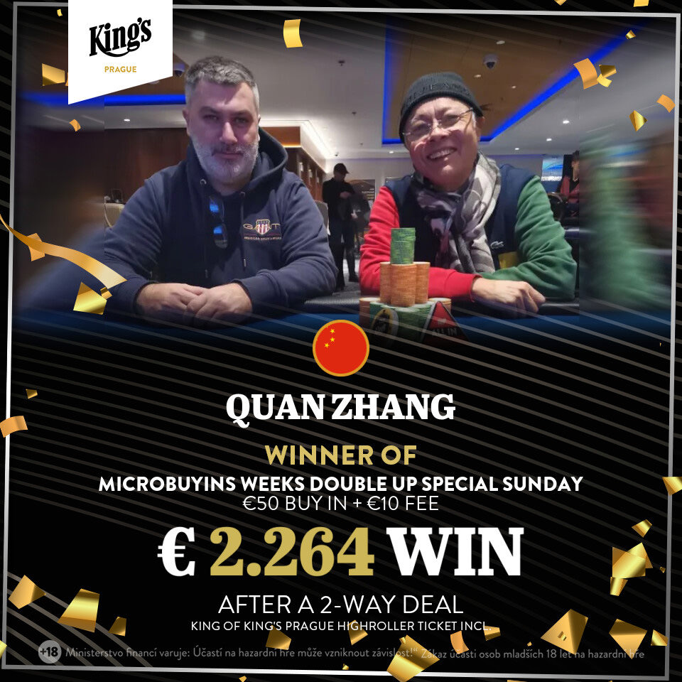 Im King’s Casino Prag lief gestern das Microbuyins Weeks Double Up Special Sunday mit einer Garantie von €10.000 und vier King of King’s Prague High Roller Tickets für die Top 4 platzierten.