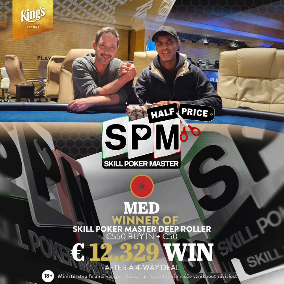 Das €600 Skill Poker Master Deep Roller startete um 18:00 Uhr mit einer €50k Garantie. 124 Spieler kauften sich ein und tätigten 19 Re-entries. Dies ergab letztendlich einen Preispool von €74.717. 15 Spieler wurden bezahlt, wobei der Min Cash €1.270 betrug.