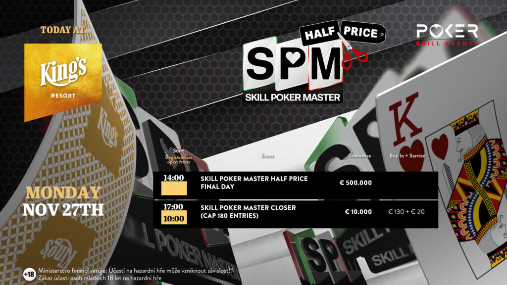 Sonntag war etwas ruhiger im King’s Resort Rozvadov. Das Skill Poker Masters Half Price powered by EuroRounders.com spielte seinen Tag 2 und es gab ein Side Event der Serie.