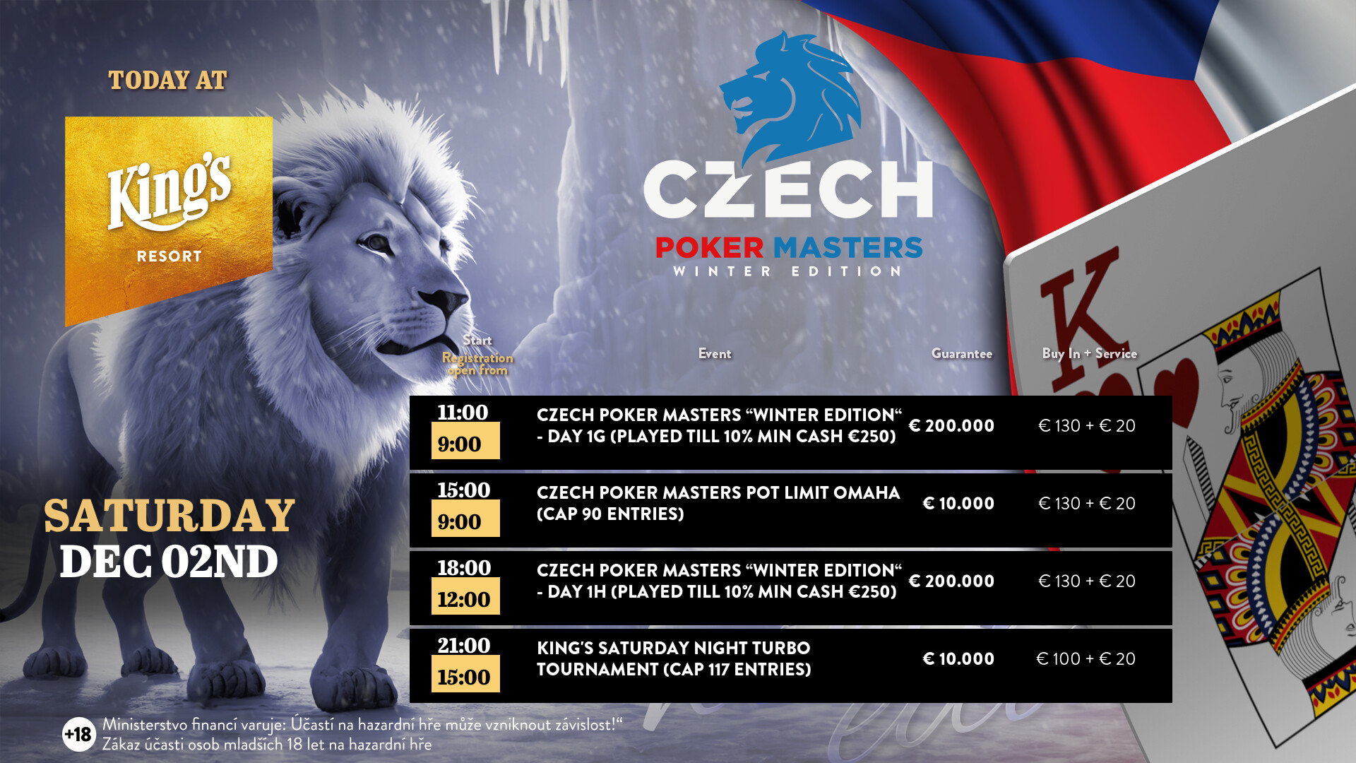 Im King’s Resort gab es am Freitag neben der „Winter Edition“ der Czech Poker Masters noch mit dem King’s Friday Night Turbo ein Tagesturnier.