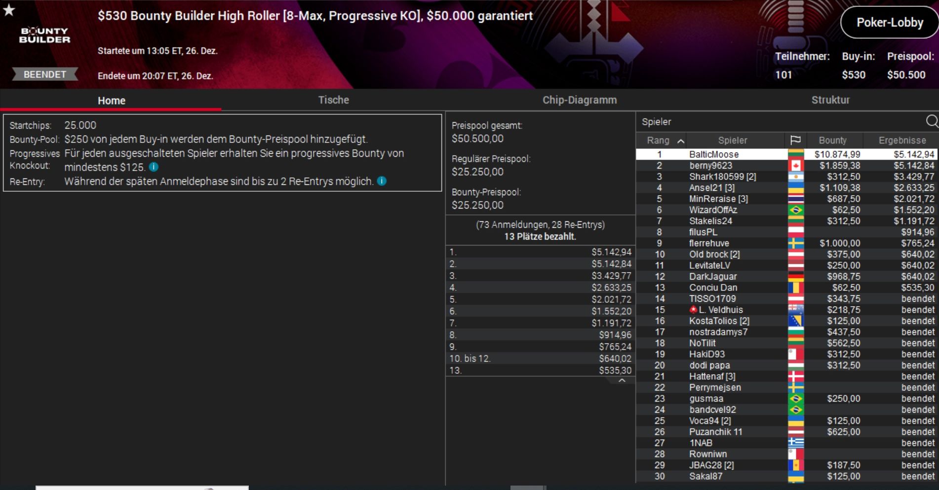 Auf PokerStars ging die New Year Series am zweiten Weihnachtsfeiertag in die nächste Runde, und natürlich durften auch die Highroller wieder ran.