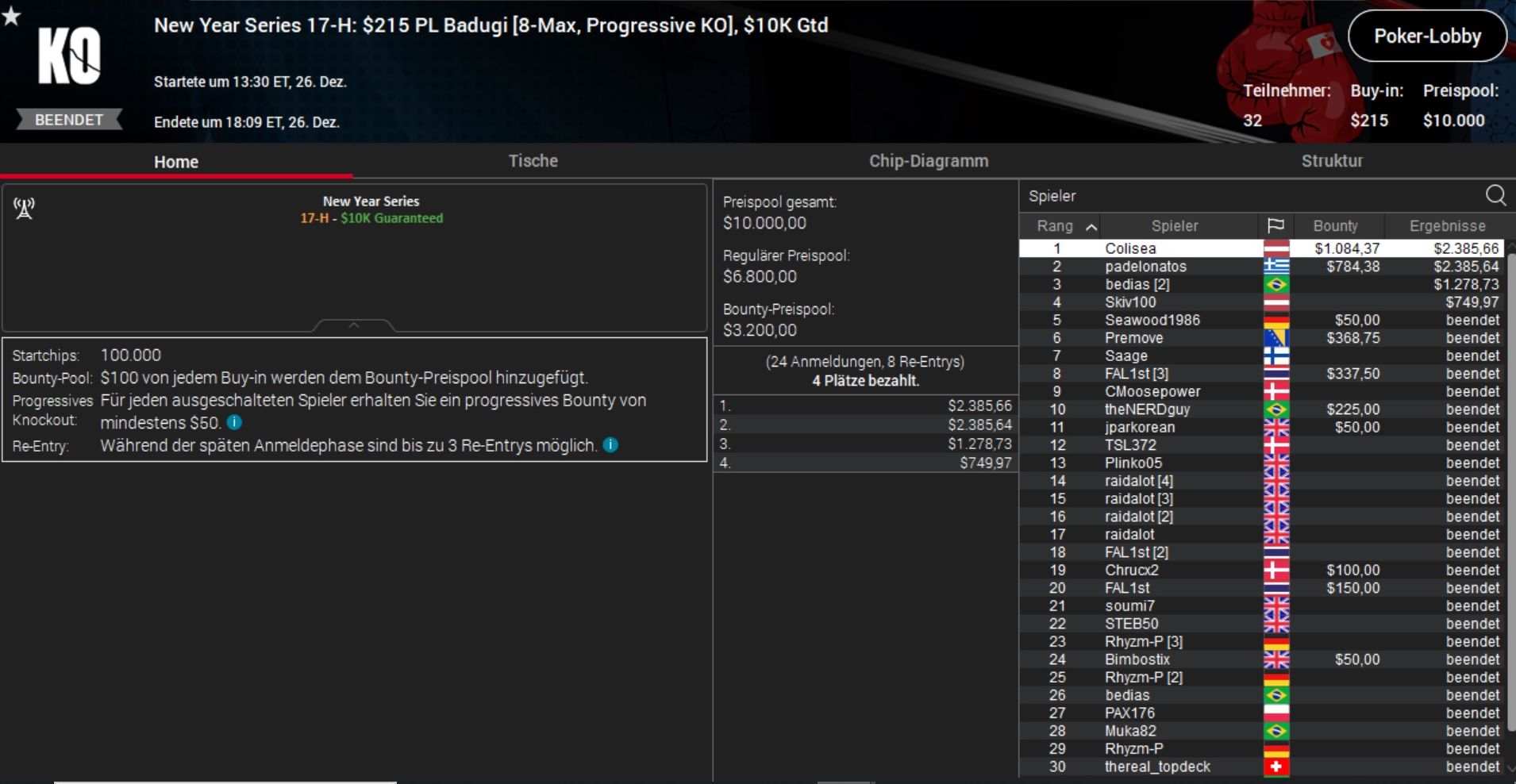 Ebenfalls in die Siegerliste konnte sich Dzmitry „colisea“ Urbanovich eintragen. Der Spezialist für abgefahrene Varianten triumphierte beim $215 Badugi (NYS 17) und erhielt rund $3.400.