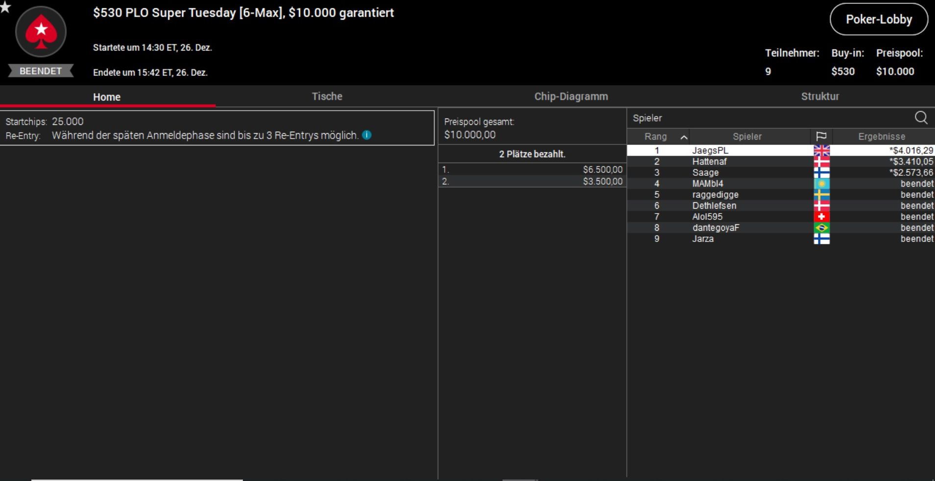 Die größten Summen wurden am Dienstag beim $530 NYS Event 15-H, einem PKO, ausgespielt. Hinter Sieger „JackRipperJr“ aus Dänemark erzielte Stefan „mindgamer“ Jedlicka den dritten Platz und räumte über $11.000 ab.