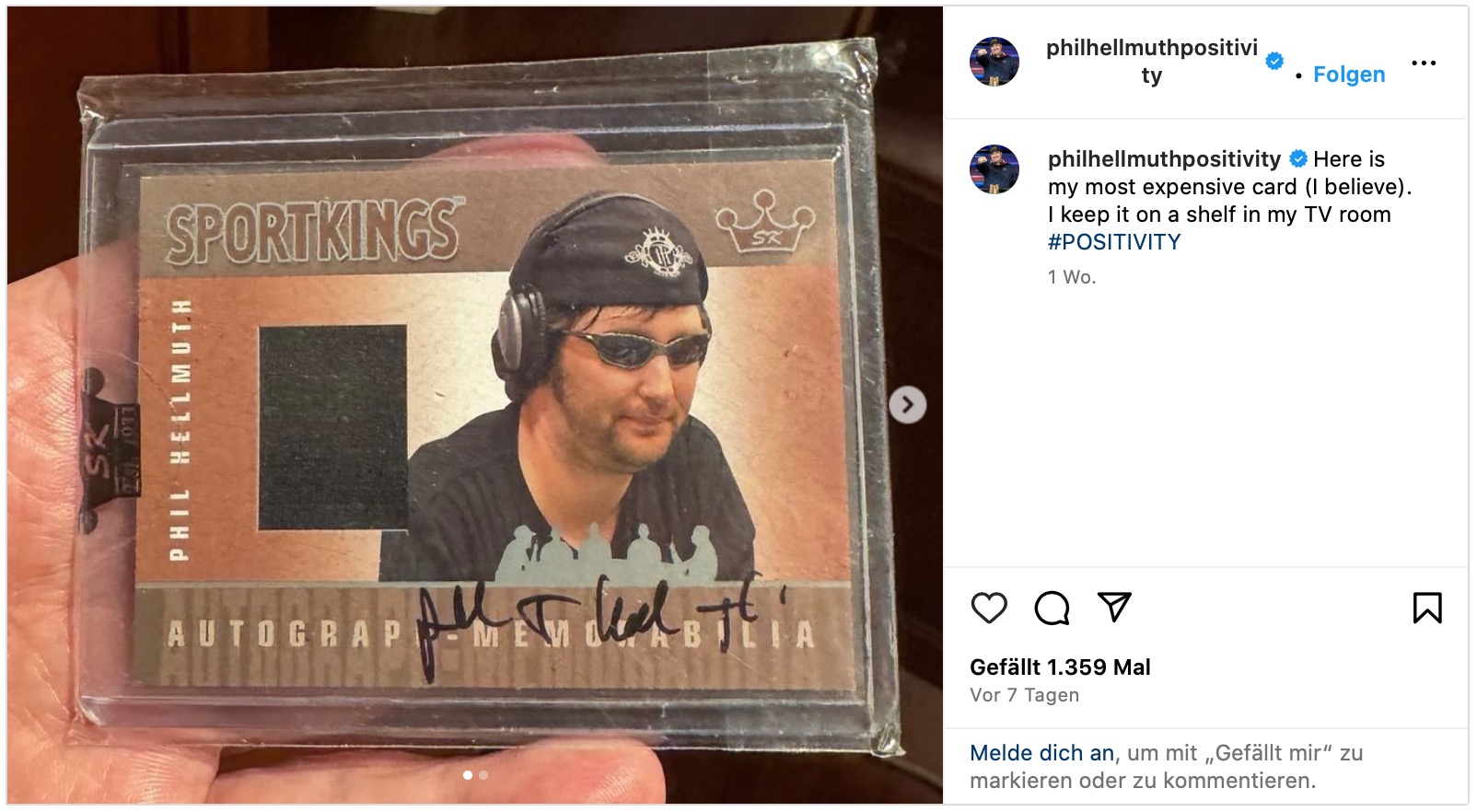 Doch mit welcher angekündigten Karte (seiner teuersten!) will Phil „Poker Brat“ Hellmuth auf Social Media angeben. Ist es vielleicht eine Rookie Karte von Basketballstar Michael Jordan, oder ein Autogramm von Baseball-Legende Babe Ruth, eine Memorabilia-Karte mit eingearbeitetem Trikot von Eishockey-Superstar Wayne Gretzki, oder eine 1-of-1 von American Football Ikone Tom Brady. Oder hat er sogar den ganz großen Coup gelandet und die teuerste Karte der Welt, eine Mickey Mantle Baseballkarte aus dem Jahr 1952 in bester Qualität (PSA 10) gekauft, die wohl momentan bei über $30.000.000 Marktwert liegen müsste.