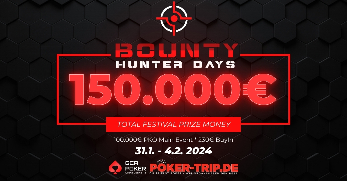 Los geht es noch in diesem Monat mit der nächsten Austragung der Bounty Hunter Days powered by Poker-Trip.de, die vom 31. Januar bis 4. Februar satte €150.000 garantieren.