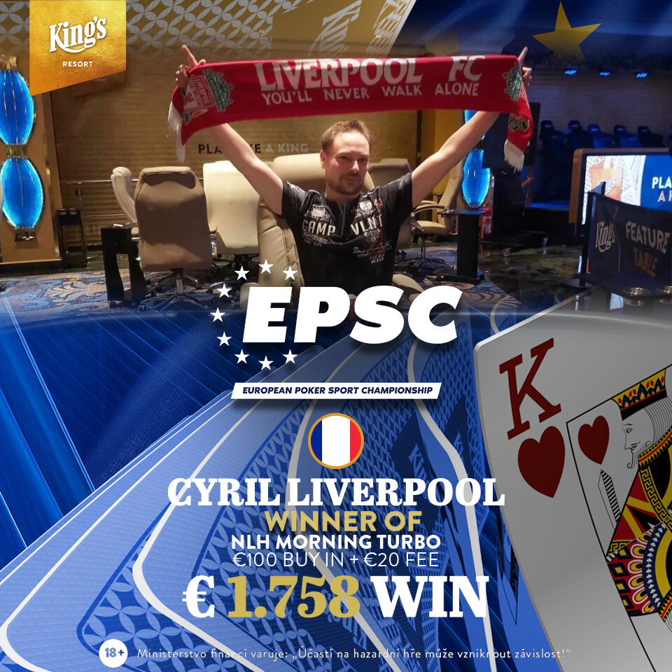 Fünf Spieler wurden bezahlt und als Gewinner konnte am Ende der französische Spieler mit dem Spitznamen ‚Cyril Liverpool‘ €1.758 mit nach Hause nehmen und für das Siegerfoto posieren.
