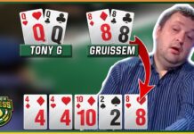 Freut ihr euch über den gelungenen Bluff oder über den glücklich getroffenen Draw, die Stone Cold Nuts oder ein Monster Pocket? Schön für euch! – Aber zeigt die Karten niemals, wenn ihr es nicht müsst. Poker ist ein Spiel, bei dem man auf Grundlage von unvollständigen Informationen optimale Entscheidungen zu treffen versucht. Also vervollständigt die Informationen auch nicht freiwillig für eure Gegner – eigentlich geht es darum, dass man für dieses Wissenszugewinn (Chips) bezahlen muss. Macht euch also nicht zum Clown und verschenkt kein Value.