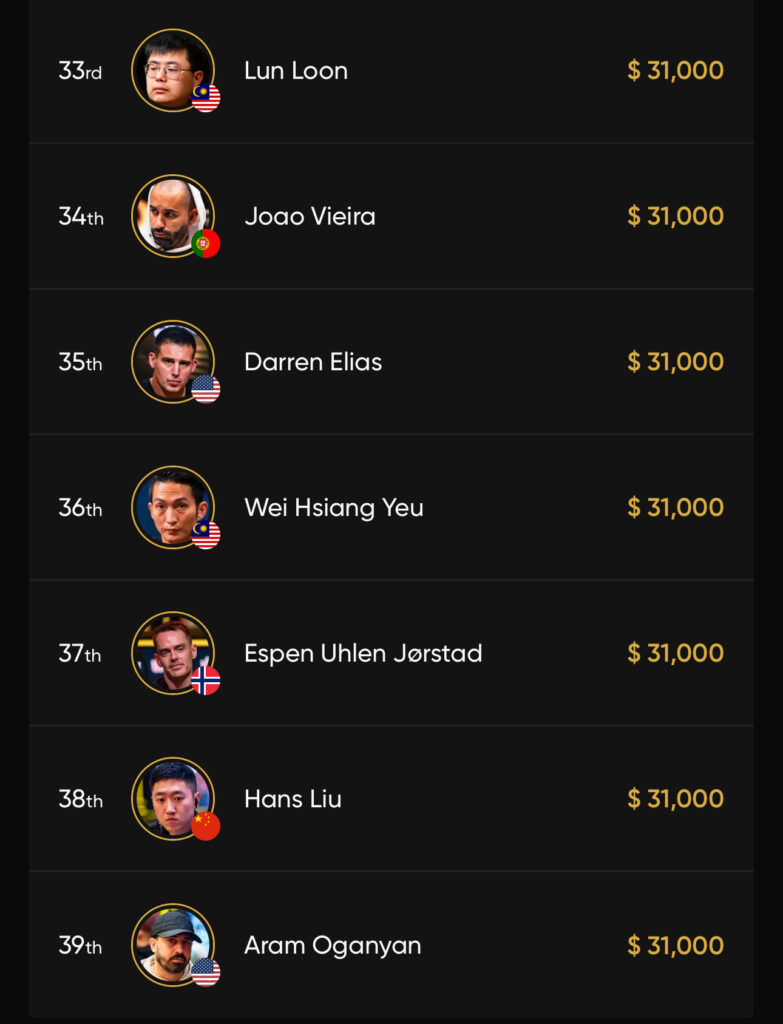 14 – Wei Hsiang Yeu, Malaysia – $53,500