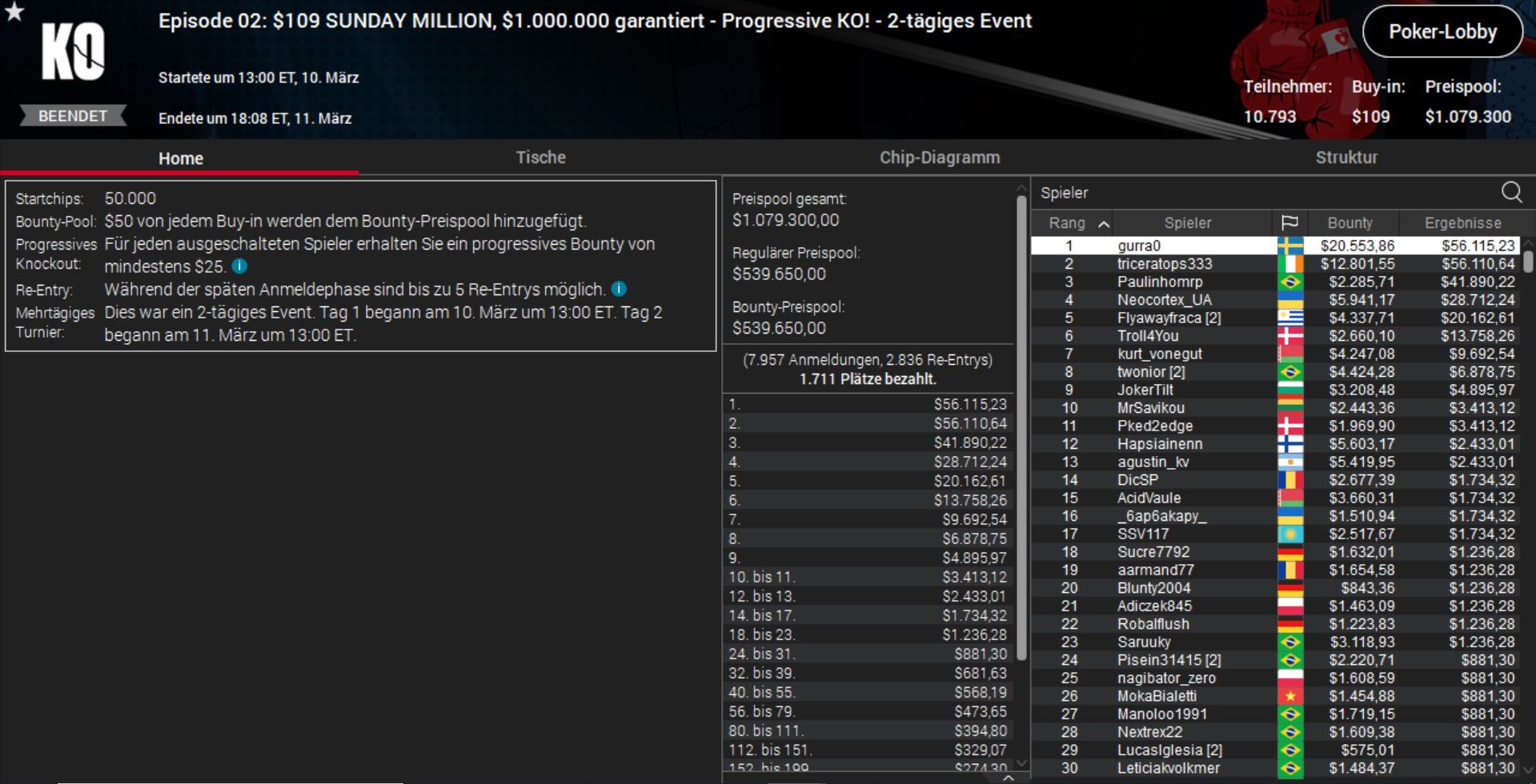 „gurra0“ bezwang 10.792 Konkurrenten und kassierte incl. Bounties über $76.000 Preisgeld.