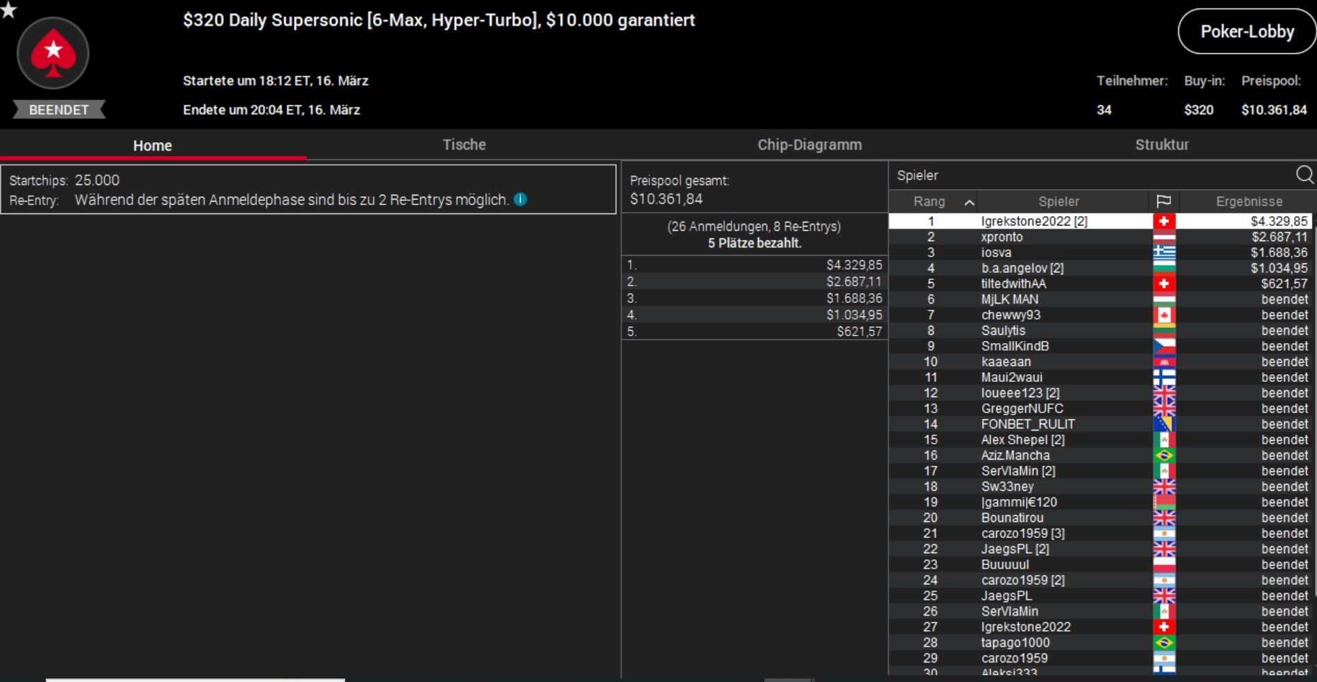 Fünf Turniere wurden am gestrigen Samstag auf PokerStars ausgetragen und dabei schnitten die deutschsprachigen Spieler richtig gut ab. Am Ende gab es zwei Siege und einen zweiten Platz.