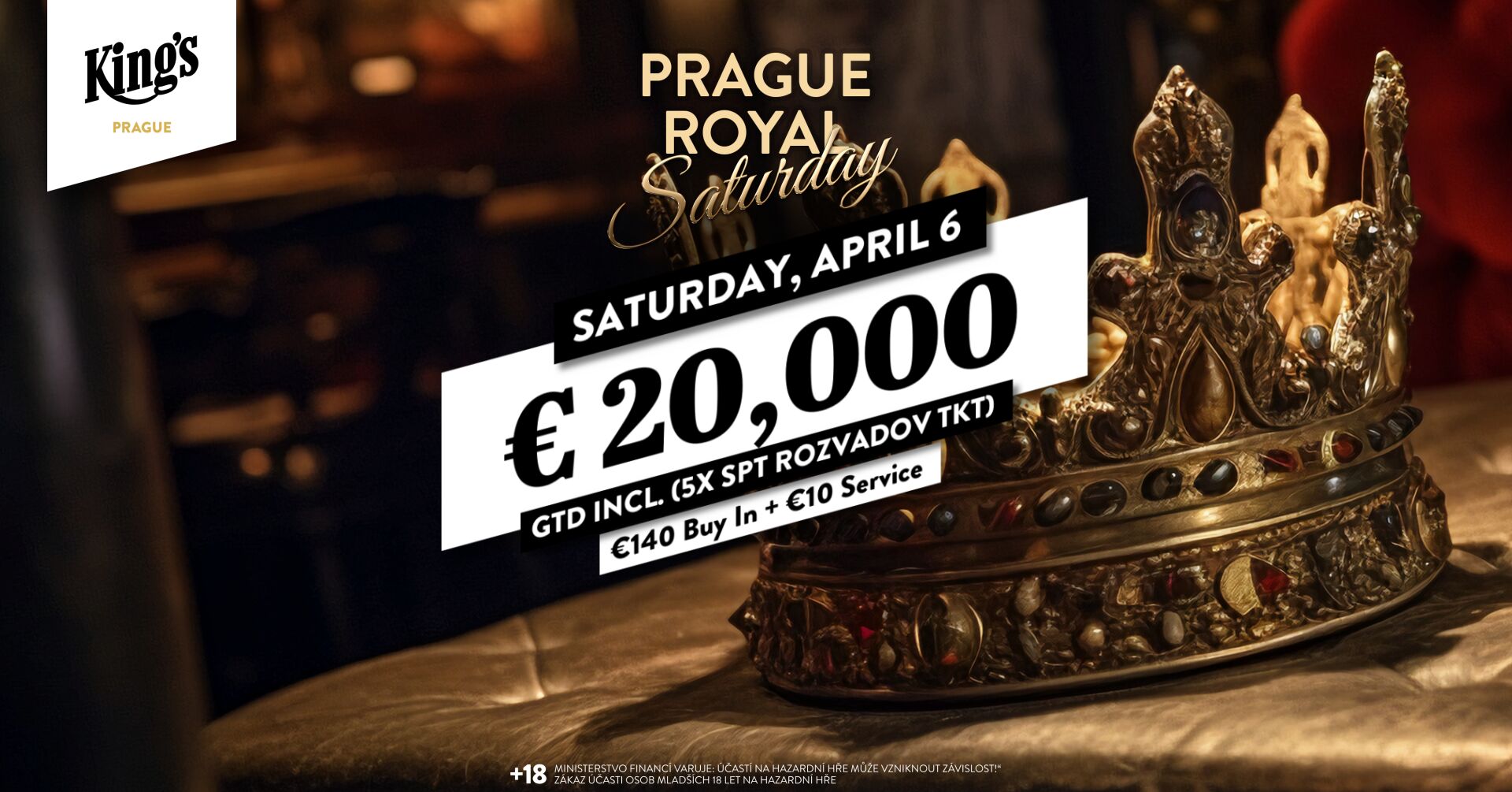 Im King’s Casino Prag wird am Samstag ab 16:00 Uhr das €140+€10 King’s Prague Royal Saturday Event gespielt, bei dem €20.000 (inklusive fünf €500 Spade Poker Tour Rozvadov Tickets) garantiert sind. Die Startdotation beträgt 40.000 und jeder Level dauert 30 Minuten. Unlimited Re-Entries sind möglich und die Late-Registration ist für zehn Levels geöffnet.