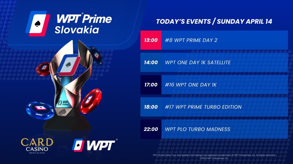 Und hier das heutige Programm der WPT Prime Slovakia: