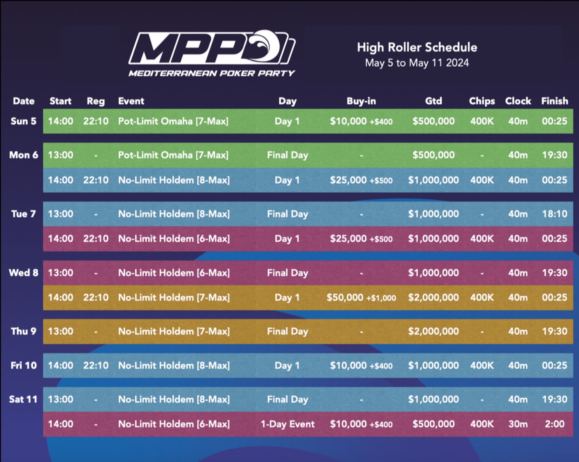 MPP Cyprus – High Roller Schedule