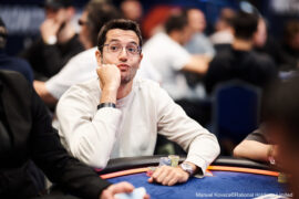 Somit wurde das Preisgeld, das eigentlich bei 175 Spieler*innen beginnen sollte, von 2 bezahlten Plätzen auf Lincoln Furukawa (BRA), Sylavain Loosli (FRA) und Oleksii Natoptanyi (UKR) zu jeweils €5.800 aufgeteilt. Danach ging es gewohntermaßen schnell mit weiteren Bustouts. 19 weitere Teilnehmer*innen verließen das Turnier noch an Tag 2 an konnten sich den Mincash von €8.700 abholen. Deutschsprachige Casher gab es darunter noch keine.