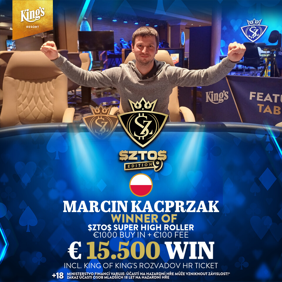 Danach fanden sich Taepper und Marcin Kacprzak, auf dem die Hoffnungen der der $ZTO$ Community lagen, im Heads-Up wieder. Am Ende war es der Pole, der sich die Bragging Rights für den $ZTO$ Titel, sowie insgesamt €15.500 Payout sichern konnte. Für Taepper blieben auf dem Runner-Up Spot noch kombinierte €12.000. Beide werden wir mit dem erspielten €1.500 King of King’s Ticket in dem High Roller Event wiedersehen.