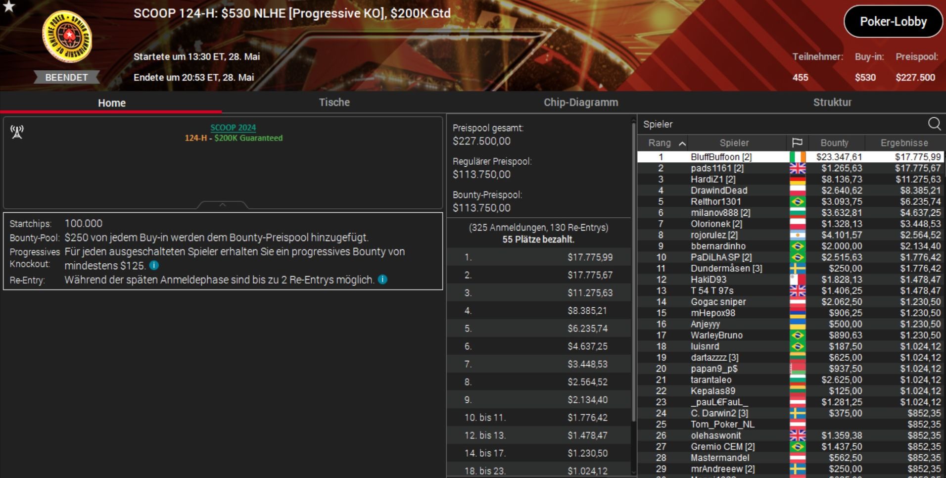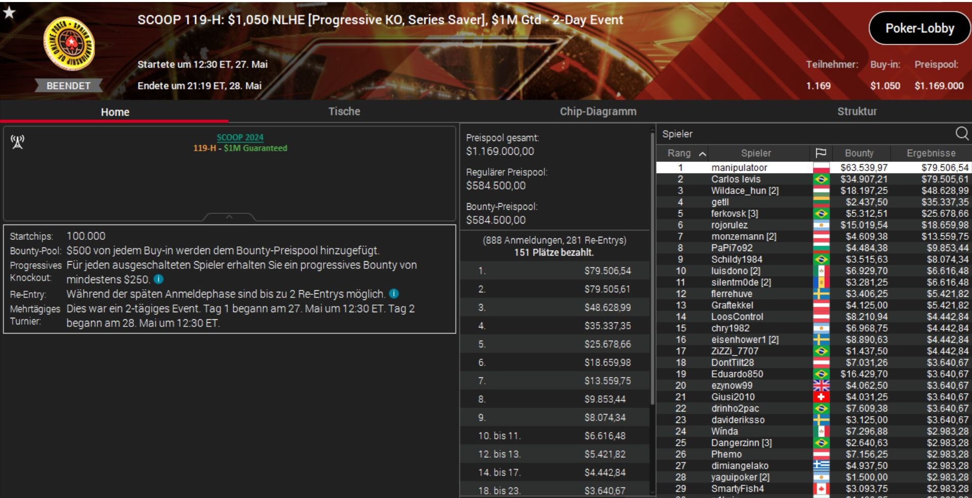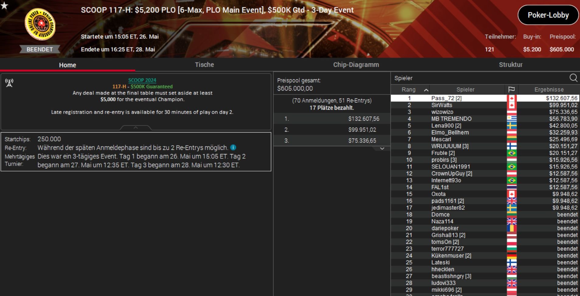 Bei den kleineren SCOOP-Turnieren holte die DACH-Fraktion dann noch zwei Podestplätze. Klemens „klem90“ Roiter wurde beim $530 Mixed NLH/PLO (SCOOP Event 125-H) Zweiter und gewann rund $11.000 Preisgeld, während „HardiZ1“ beim $530 NLH (SCOOP Event 124-H) Rang 3 belegte und rund $20.000 cashte.