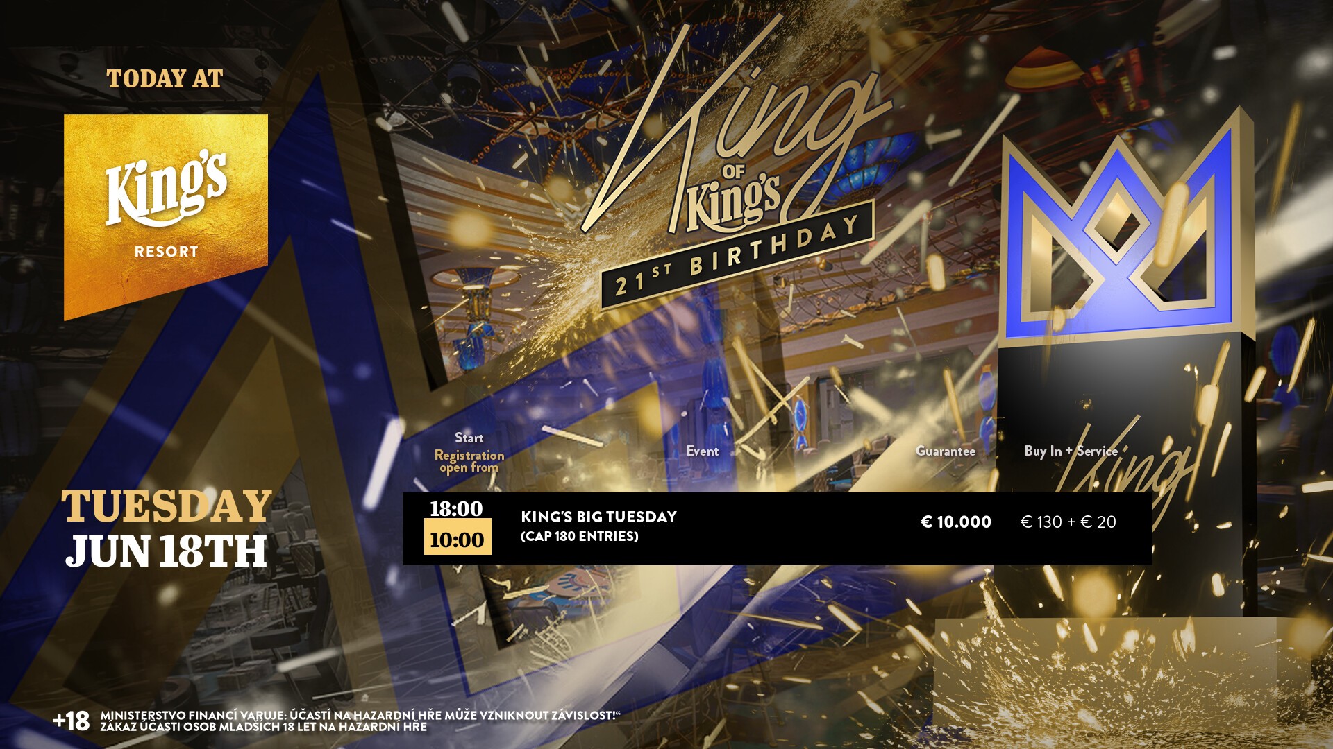 Im King’s Resort Rozvadov geht es nach dem aufregenden Finale des WOLF Millionaire heute etwas ruhiger zu. Mit dem €130+20 Big Tuesday und einer Garantie von €10.000 steht aber natürlich ein Turnier auf dem Programm.
