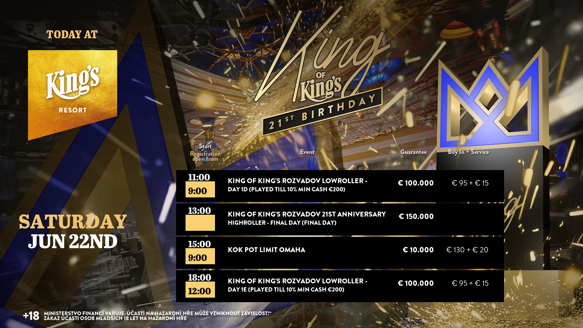 Beim €95+15 Low Roller King of King’s Geburtstagsturnier zum 21. Jahrestag stand der dritte Starttag auf dem Programm.