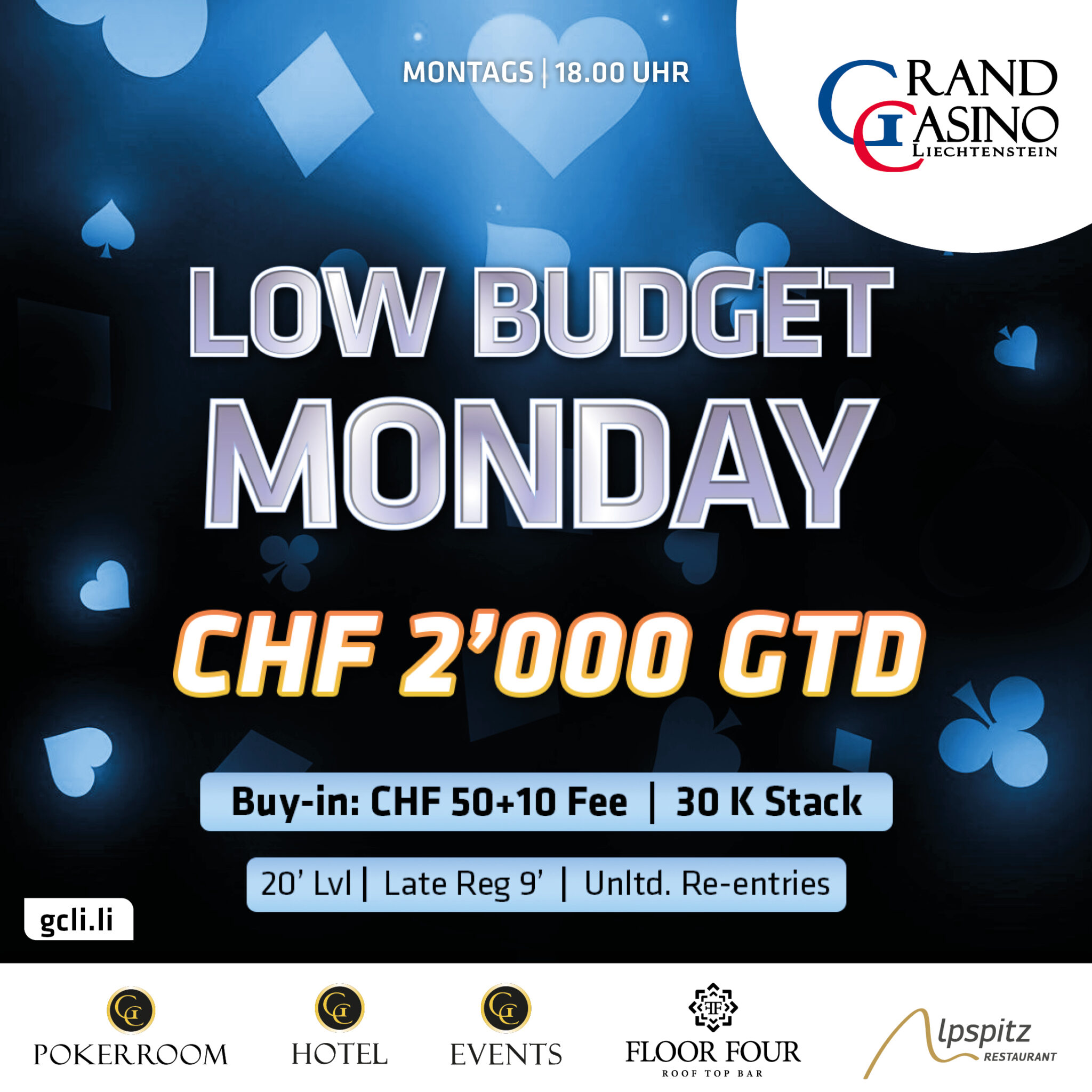 Nach dem Abschluss des Hitwochenendes stand gestern im Grand Casino Liechtenstein (GCLI) wie gewohnt das Low Budget Monday auf dem Turnierkalender.