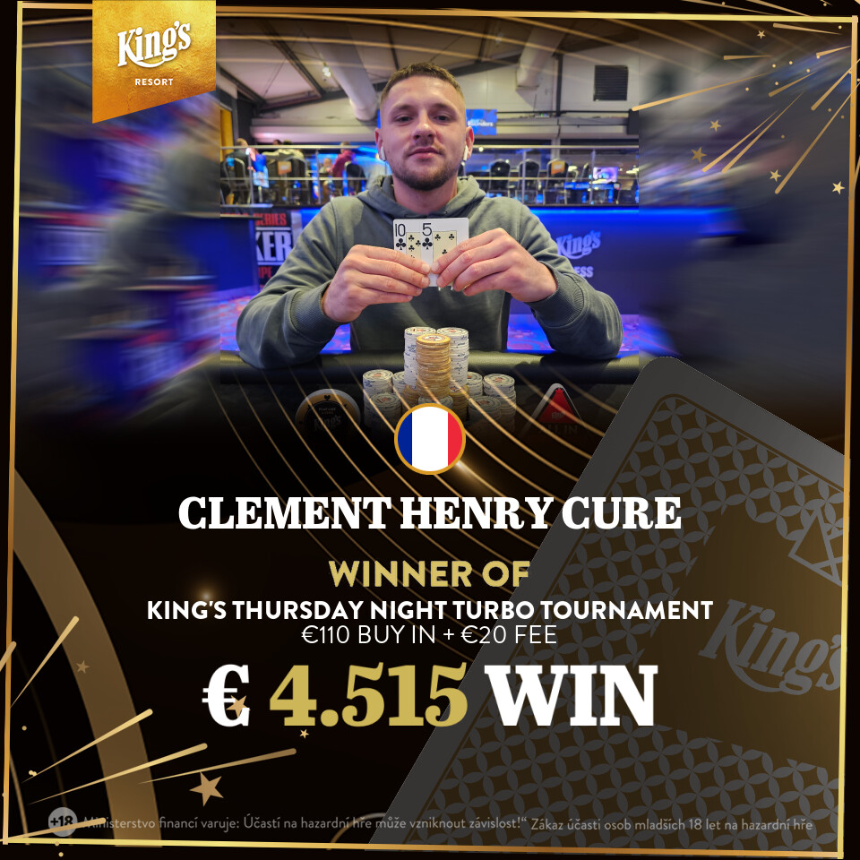 Im Thursday Night Turbo mit einer €10.000 Garantie gab es insgesamt 180 Entries, was einen Preispool von €18.810 schuf.