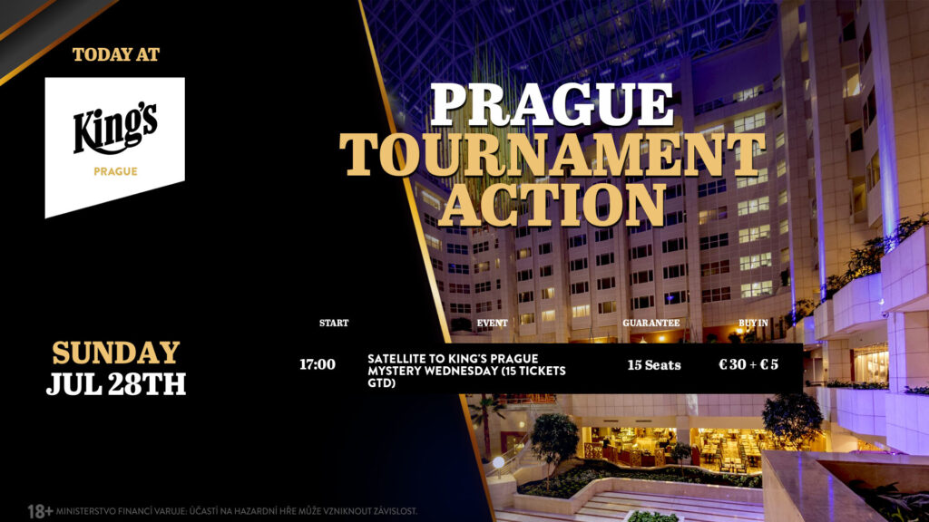 Im King’s Casino Prag wird heute ein €35 Satellite zum King’s Prague Mystery Wednesday angeboten. Dabei sind 15 Tickets garantiert.