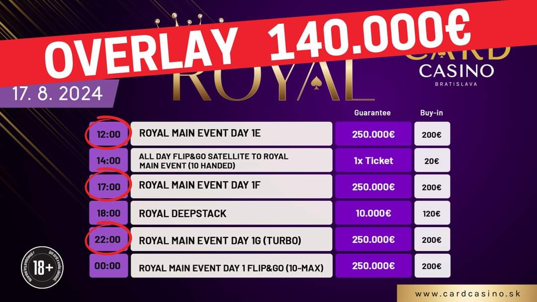 Im Card Casino Bratislava in der slowakischen Hauptstadt wird derzeit das €200 Royal gespielt – €250.000 werden in dem Turnier garantiert.