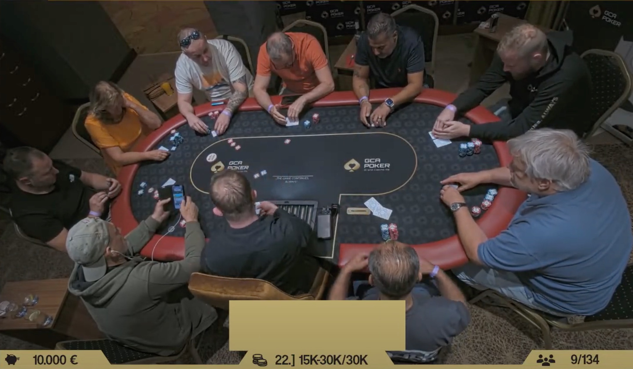 Den Samstagabend verbrachten 98 Spieler*innen im Grand Casino Asch. Für das Buy-In von €70+€10 wurden außerdem 36 Re-Entrys genommen, was in Summer 134 Total Entrys ergab. Damit wurde die Garantie von €10.000 um 9 Entrys verpasst, was den Teilnehmer*innen ein kleines Overlay von €620 auf Kosten des Hauses bescherte. Die €10.000 Preispool sollten an die Top-15 ausgeschüttet werden, beginnend mit €190 Mincash bis hin zur Siegprämie von €2.800.