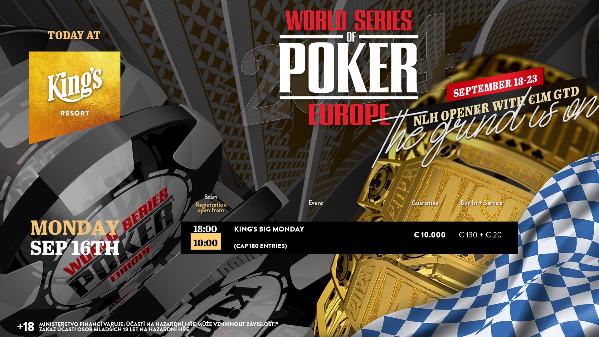 Heute findet im King’s Resort Rozvadov um 18 Uhr das €130+20 King’s Big Monday mit einer Garantie von €10.000 stattt.