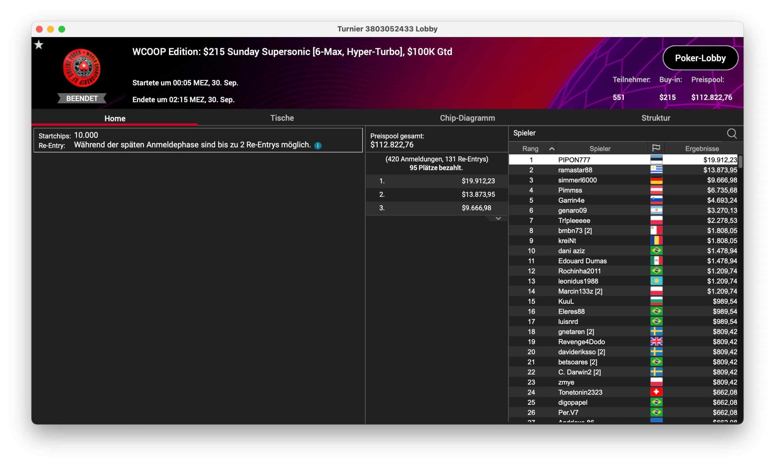 Am Sonntag war bei der World Championship of Online Poker (WCOOP) auf PokerStars jede Menge los – viele Turniere mit zwei, drei und sogar vier Tagen länge starteten, einige wurden gestern auch entschieden.