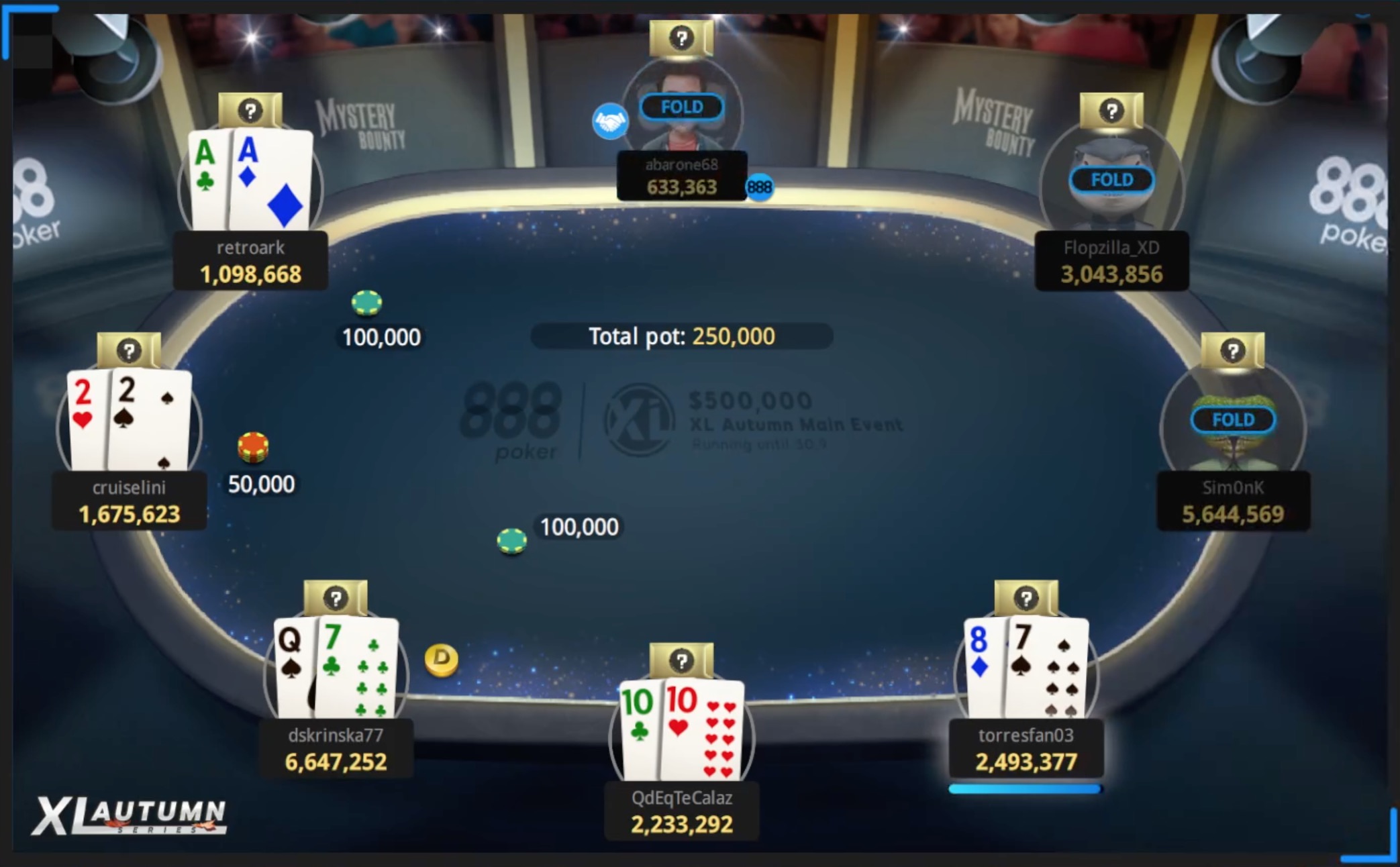 Die XL Autumn Series auf 888poker war mit 27 actiongeladenen Events ein voller Erfolg, das abschließende $500.000 Mystery Bounty Main Event über 3 Tage bildete da keine Ausnahme. Im auf Dienstag verschobenen Magic Monday wurde vor den Augen der Twitch-Zuschauer der Final Table des Main Events entschieden, und das mit Pokerprominenz am Tisch!