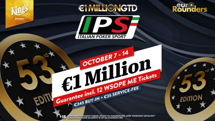 Nach der World Series of Poker Europe (WSOPE) geht es im King’s Resort munter weiter. €1.000.000 werden beim Italian Poker Sport powered by EuroRounders nur im Main Event bereits garantiert. Vom 07. bis zum 14. Oktober 2024 heißt es: Ciao Rozvadov!