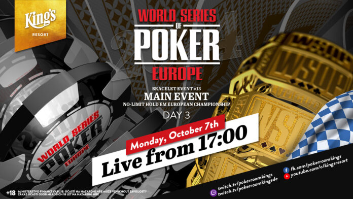 Am Montag gibt es ab 17:00 Uhr live aus dem King’s Resort Rozvadov, den Livestream vom Tag 3 des €10.000+€350 World Series Of Poker Europe (WSOPE) NLH Championship Main Events #13.