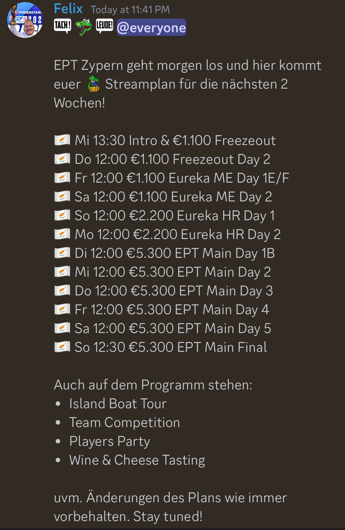 Hier ist der offizielle PokerStars Livestream-Plan: