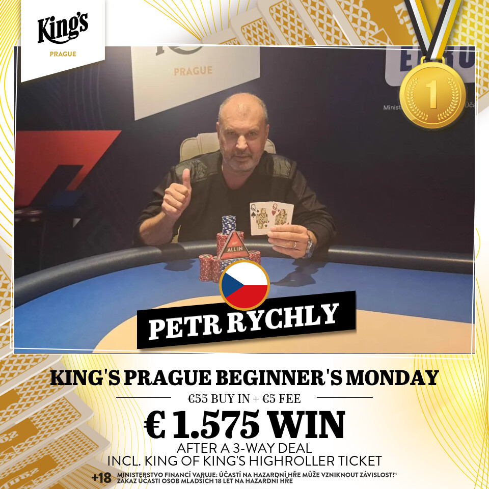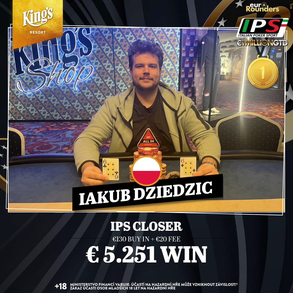Gestern fand im King’s Casino Prag das €55+5 King’s Prague Beginner’s Monday statt. Außerdem gab es im King’s Resort Rozvadov noch den Abschluss des IPS Italian Poker Sport Festival powered by euroRounders.com mit dem €130+20 IPS Closer.