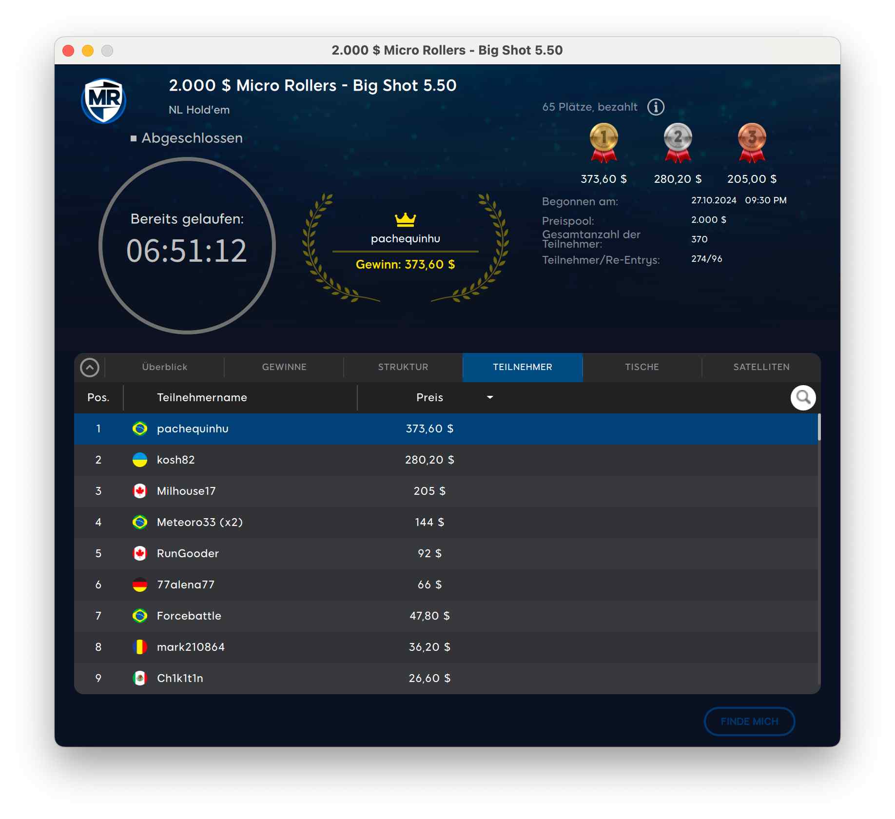 23.10.24 | 17:00 | KO Games #12 – MB Big or Small Micro | $5.50 | $5,000 |