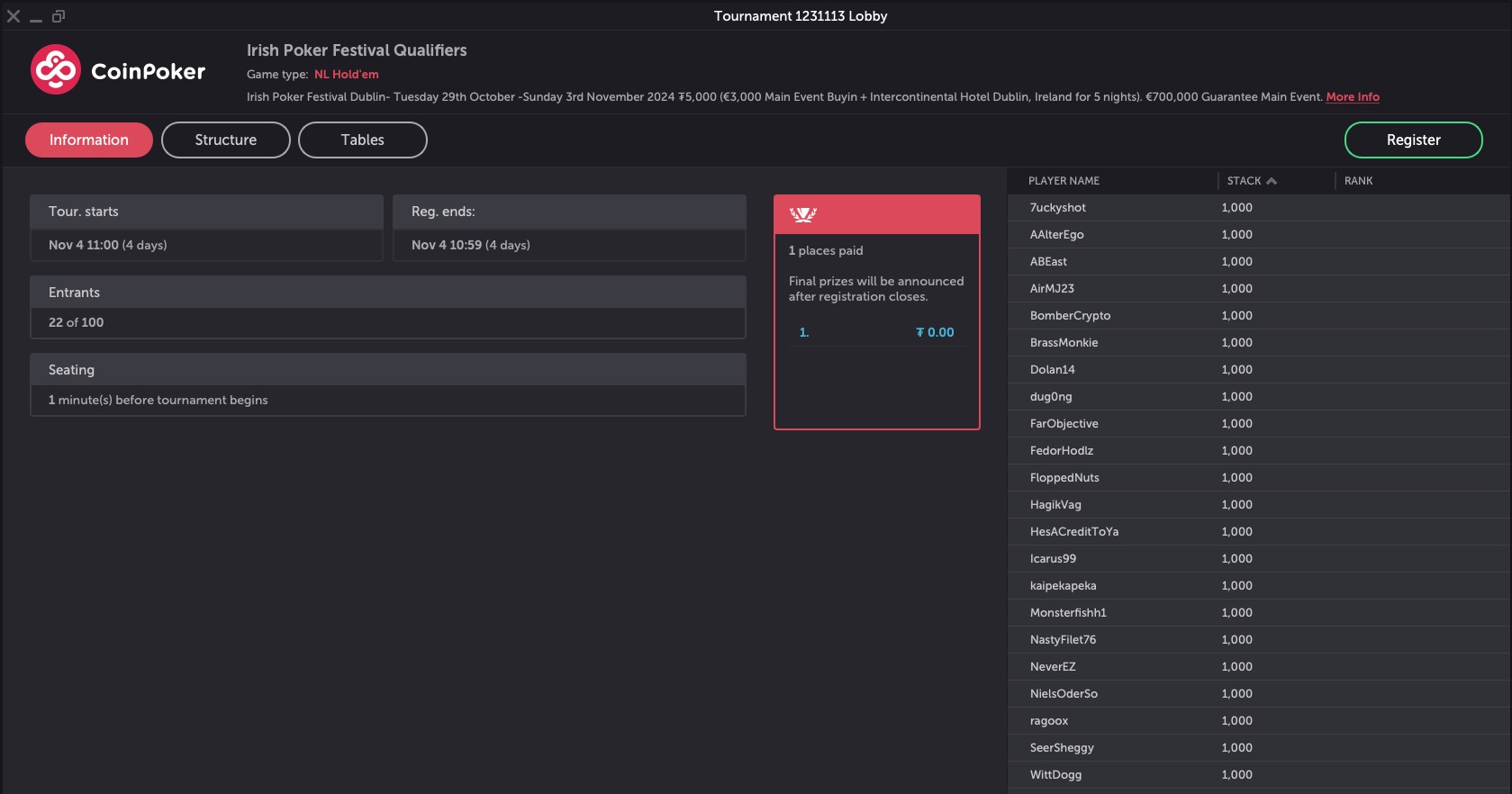 Sie alle werden auch Ansprechpartner für die Qualifier, Direct Buy-Ins und auch diejenigen sein, die sich die Hotel Packages via CoinPoker gegönnt haben. Insgesamt werden etwa 55 Spieler vor Ort sein, die über die Crypto Poker Plettform CoinPoker ihren Weg nach Dublin gefunden haben.