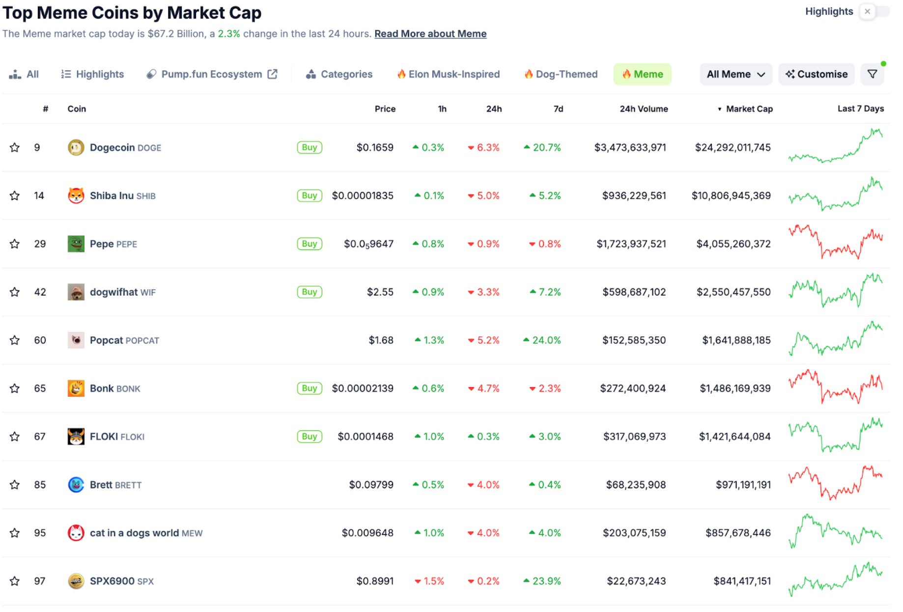 Die einzelnen gefeatureten MEME Coins im Überblick: