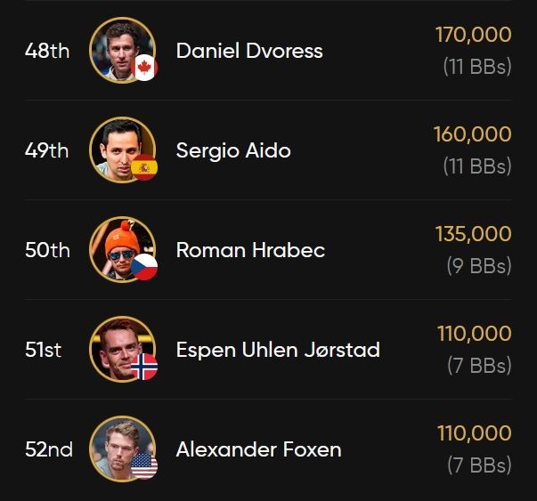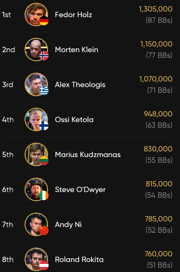 Alex Foxen ließ anschließend nicht mehr locker und brachte seine Führung ins Ziel. Damit gewann er insgesamt $1,47 Millionen Preisgeld und feierte ein eindrucksvolles Comeback bei den Triton SHR. Zuletzt war er 2019 in London an den Start gegangen.